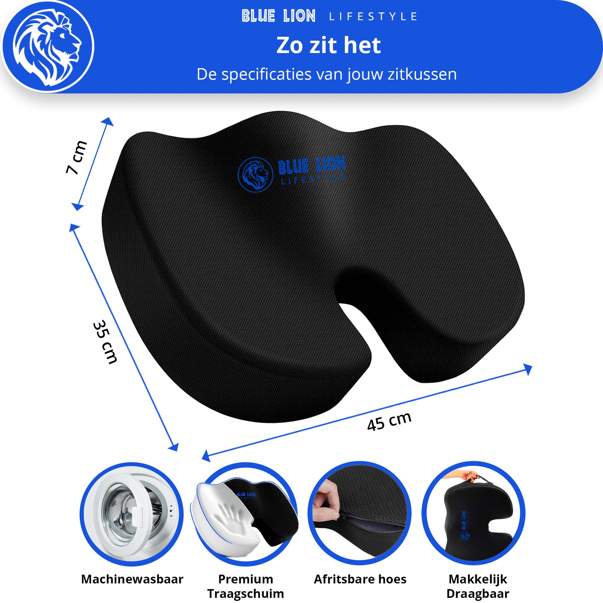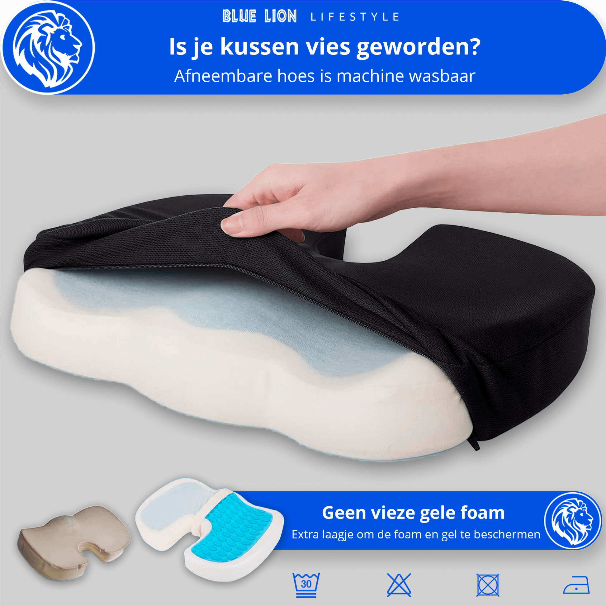 Of je nu gevoelig bent voor warmte of puur voor ondersteuning gaat, bij Blue Lion kies je wat bij jouw lichaam past. Onze variant met verkoelende gel voorkomt klamme zitmomenten op warme dagen, terwijl de standaardversie extra zacht comfort biedt bij lage temperaturen of gevoeligheid.