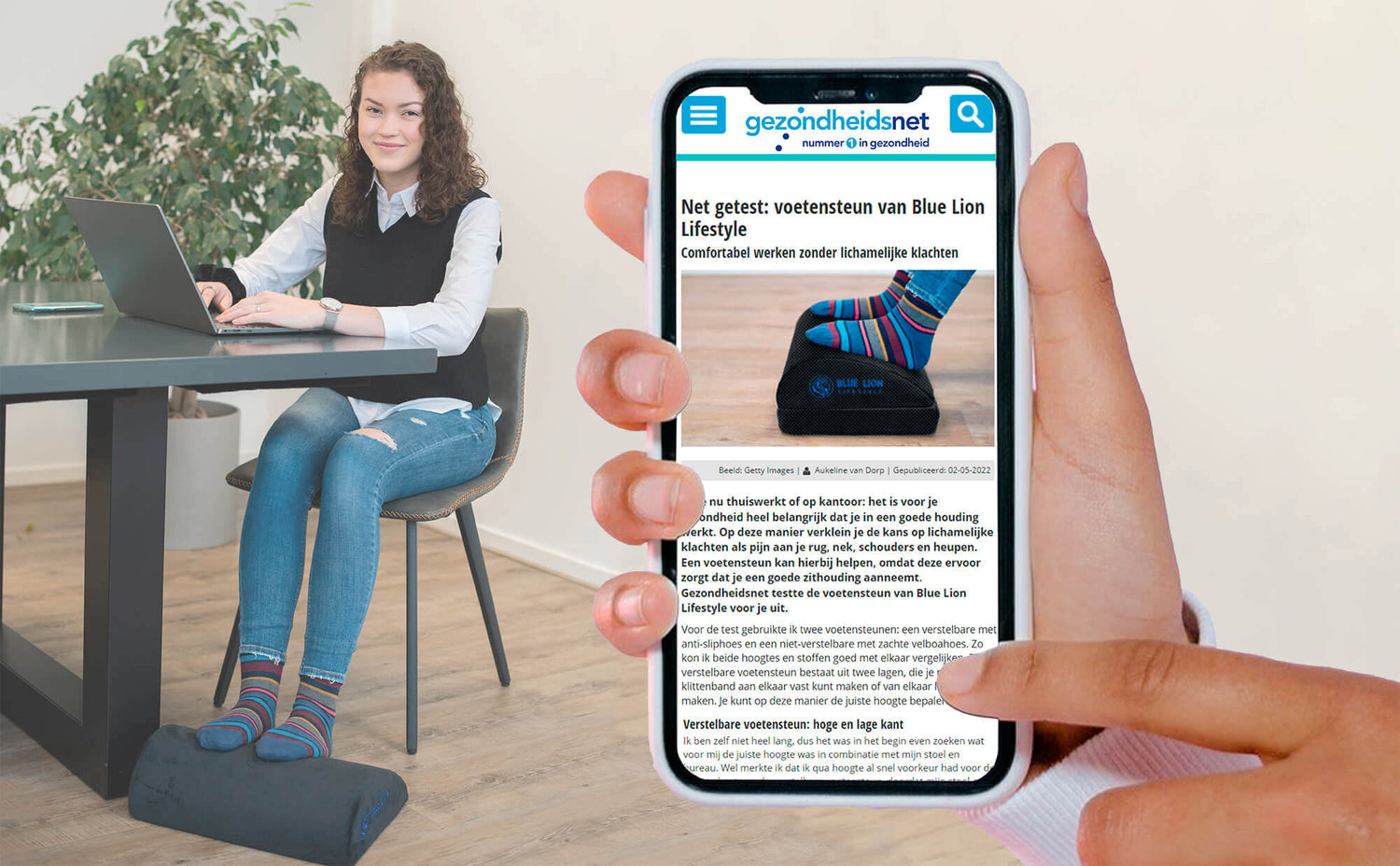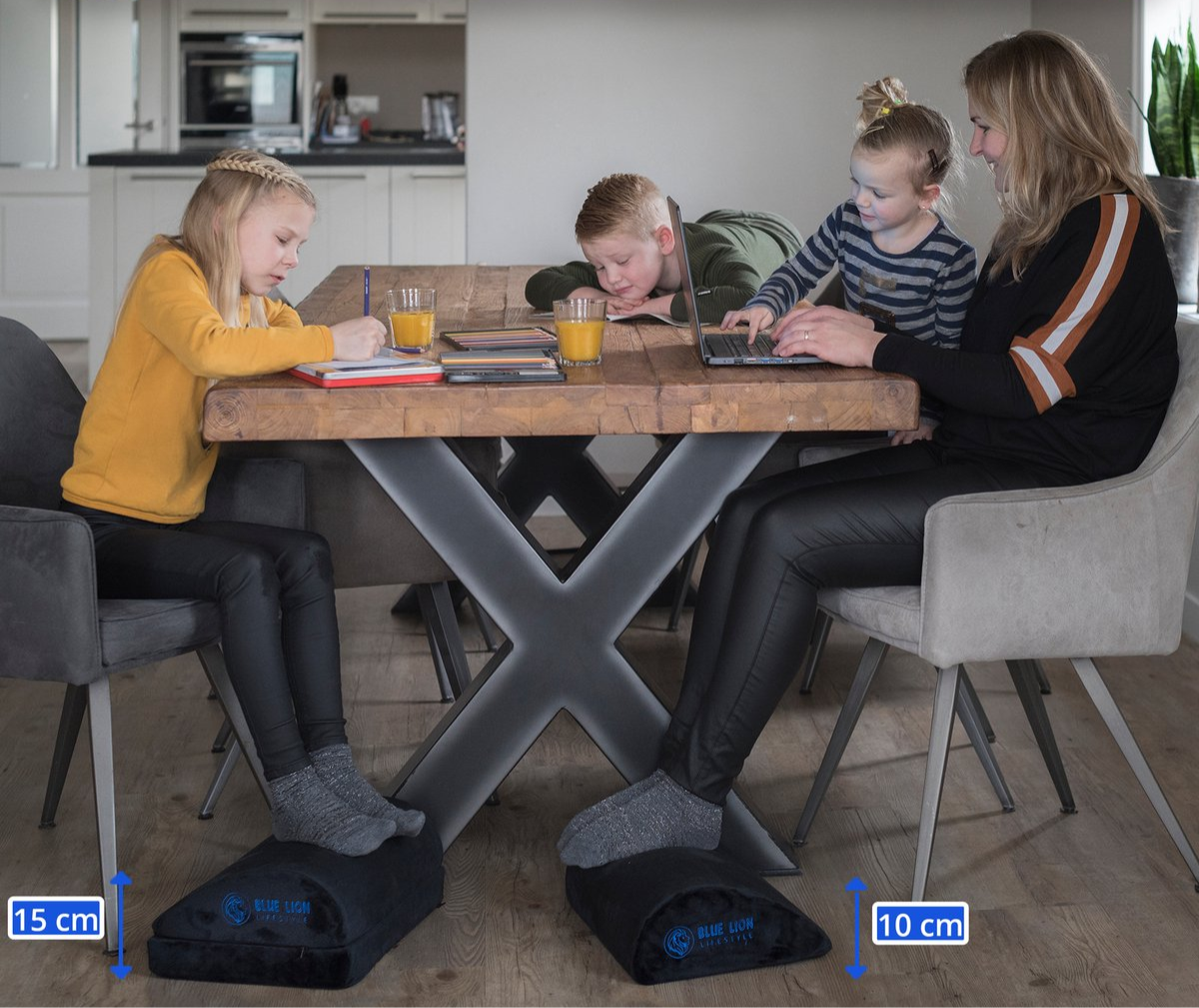 De Blue Lion voetensteun draagt bij aan een betere zithouding, minder druk op je onderrug en een actievere zit.