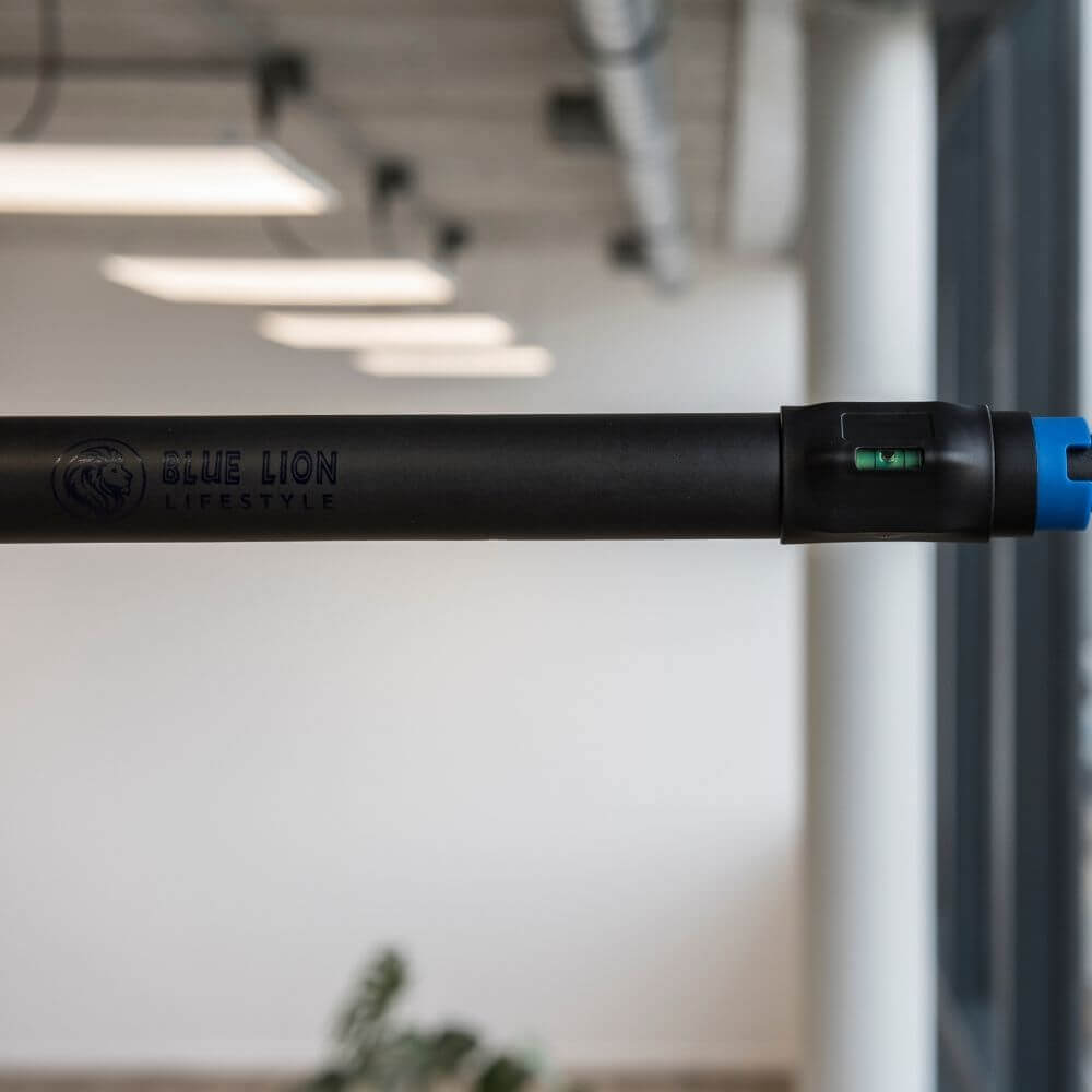 Geen gedoe met schroeven of boren. Dankzij het slimme draaimechanisme en de meegeleverde waterpas installeer je de stang binnen enkele minuten veilig en recht in elke stevige deuropening (72–100 cm breed).